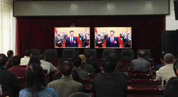 中国共产党第十九次全国代表大会于2017年10月18日上午9:00在北京隆重召开,楚雄州发改委组织全委干部职工集中收看了开幕式盛况,认真聆听习总书记代表第十八届中央委员会向大会所作的报告。