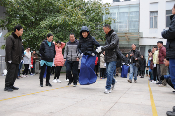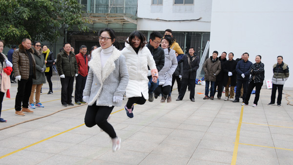 此次运动会分集体项目和个人项目,集体项目有拔河、跳绳、背夹球、袋鼠跳;个人项目有羽毛球、乒乓球、双扣、跳绳。大家兴致高昂,精神振奋。比赛中加油声、呐喊声、欢笑声不绝于耳,大家都本着“友谊第一,比赛第二”的赛场精神,互相鼓劲。