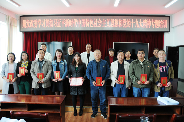 培训结束时,州发改委副主任、机关党委书记金正东同志作了会议小结:这次培训即专题党课非常及时,必将对推动州发改委深入学习贯彻习近平新时代中国特色社会主义思想和党的十九大精神产生重要影响。这次专题党课非常解渴,帮助我们深刻领会了党的十九大精神实质。这次专题党课更是示范,全委党员和干部职工,要坚持读原文,切实在学懂上下功夫;要坚持学精髓,切实在弄通上下功夫;要坚持干实事,真正在做实上下功夫。